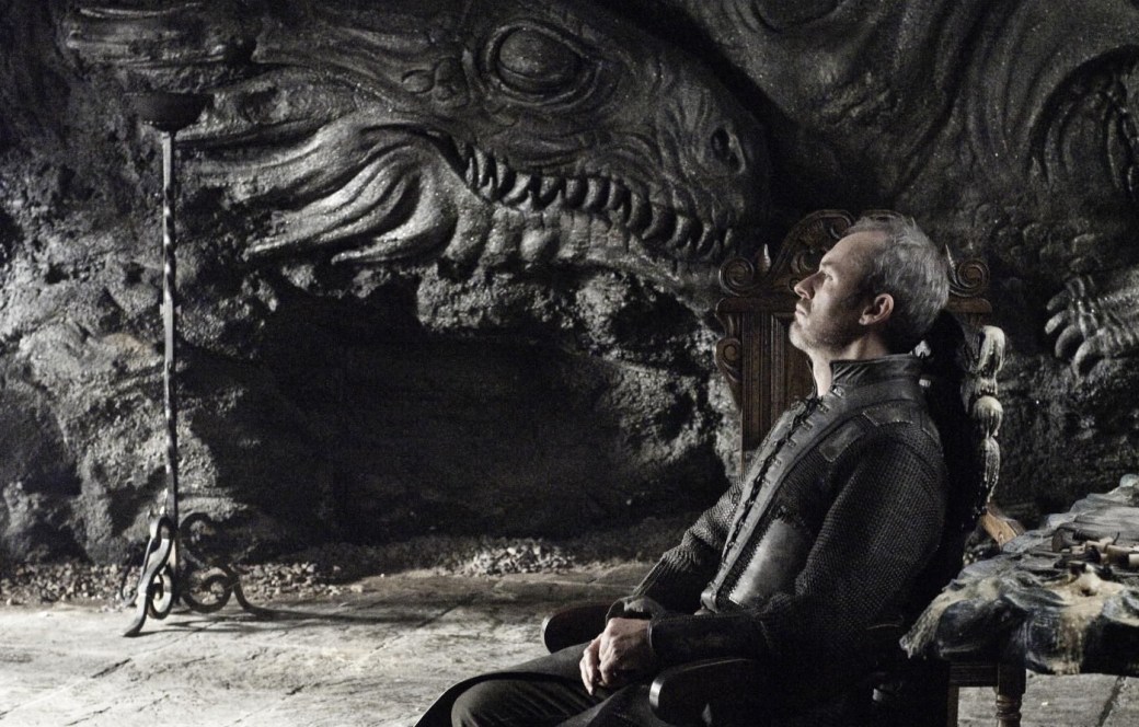 Both of these quotes are about Dragonstone. Dragonstone, a fortress of stone burnt black by dragon fire, is a great example of a city which serves as an analog to one of the moons – the fire moon, of course. It contains sleeping stone dragons and a thousand fires and as many red doors, all of which express the potential to produce the thousand thousand fiery dragon meteors. This is the place where Stannis’s Lightbringer was drawn from the fire, just as the fire moon is the place where the Lightbringer meteors emerge from. Stannis is a dark solar king, and Melisandre represents the fire moon, and when the fire moon joined up with the sun king in the same place, when they copulated, Lightbringer appeared. This is what Dragonstone represents – the birth of the dragon meteors, the falling red stars, and so we see symbolic depictions of the meteor shower here.
