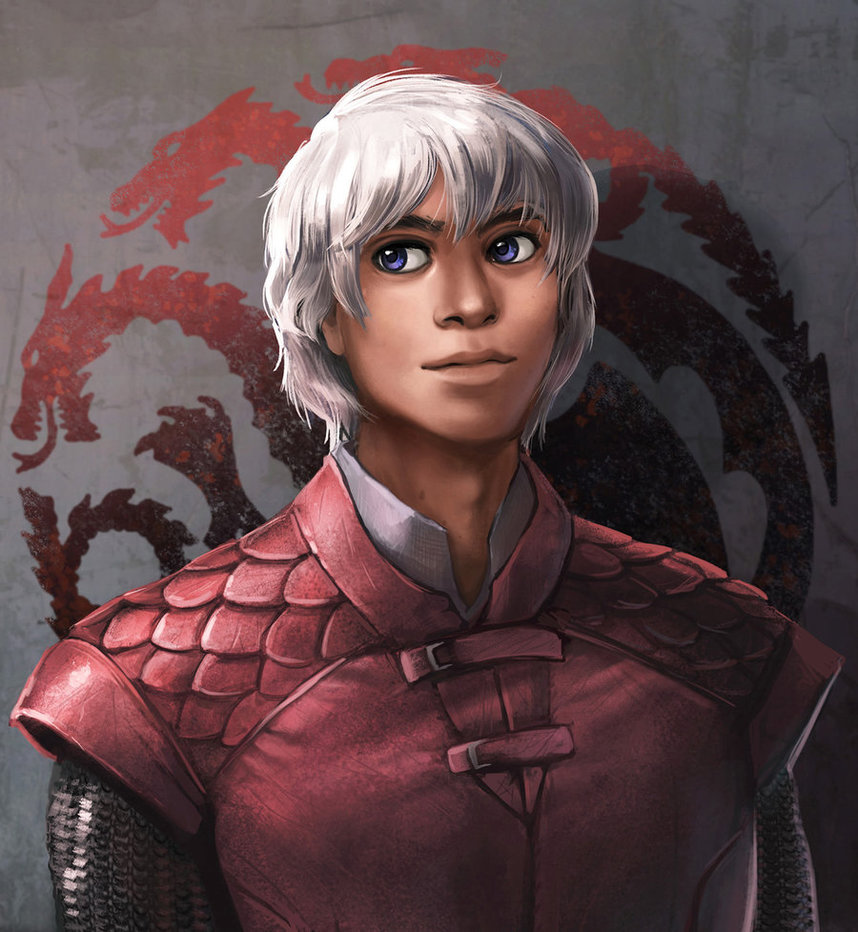 The main thing to take away is the ever-present black and white sword duel – Ulrick Dayne with his white and purple house colors and white sword vs. Daemon Blackfyre with his black and red house colors and his black sword. Aemon the Dragonknight is a delightful mingling of their symbolism, being a white sword of the Kingsguard who carries a black sword, Dark Sister. We’ll talk about Aemon the Dragonknight a bit later, actually, as I think he is another example of our “good Other” figure, mixing fire and ice symbolism – a white shadow Kingsguard with a black dragon sword certainly qualifies.