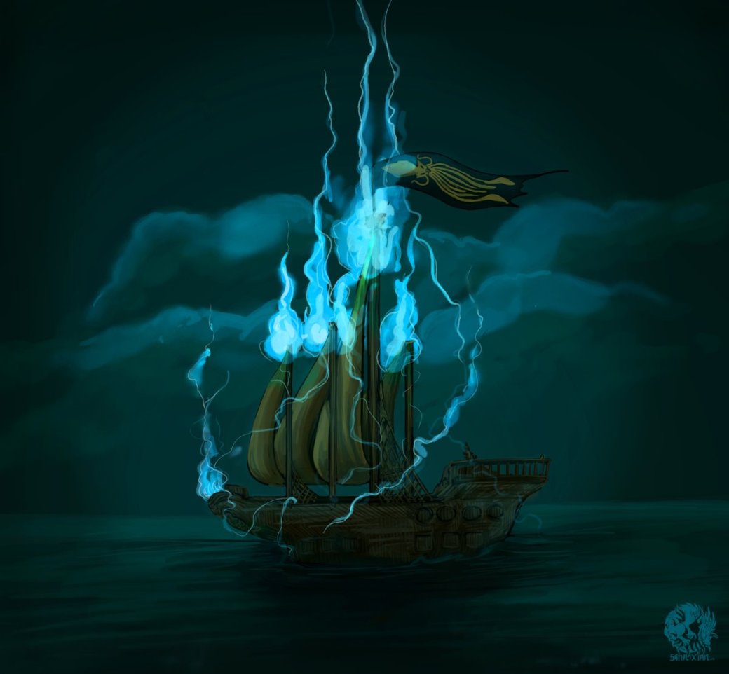 Sea dragon boats carrying banks of torches, like the fire the Drowned God brought from the sea. They’ve been given the living fire of the jade demon, and now they are all awesome burning boat sea dragon symbols! That will probably come as small consolation to the burning men leaping off of them, however.