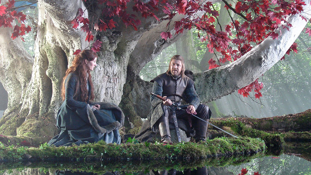Speaking of Ned’s sword, there’s an ever better black ice symbol that makes an appearance in one Theon’s later ADWD chapters, and in the same place as the wedding – in the godswood, before the heart tree. This time it is the cold black pond beneath the heart tree itself that freezes over: